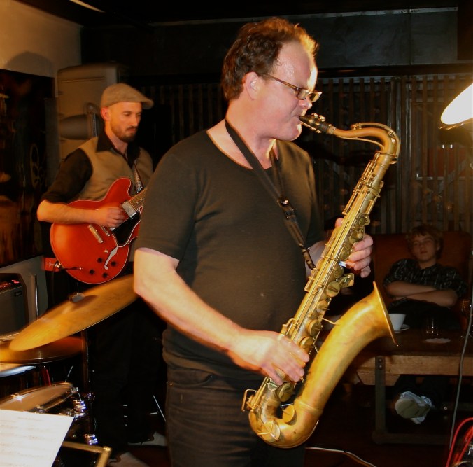 While most of the pieces swiftly morphed into full-on blowing numbers there was one ballad. In situations like this a band could not do better than call on Roger Manins to execute the key lines and he delivered in spades. Reuben introduced the number by saying, ” I had always wanted to write a dark evil sounding ballad because I figured that there was a real market for this”. This number ‘Search in progress’ gave us an insight into the subtler aspects of the band’s repertoire.