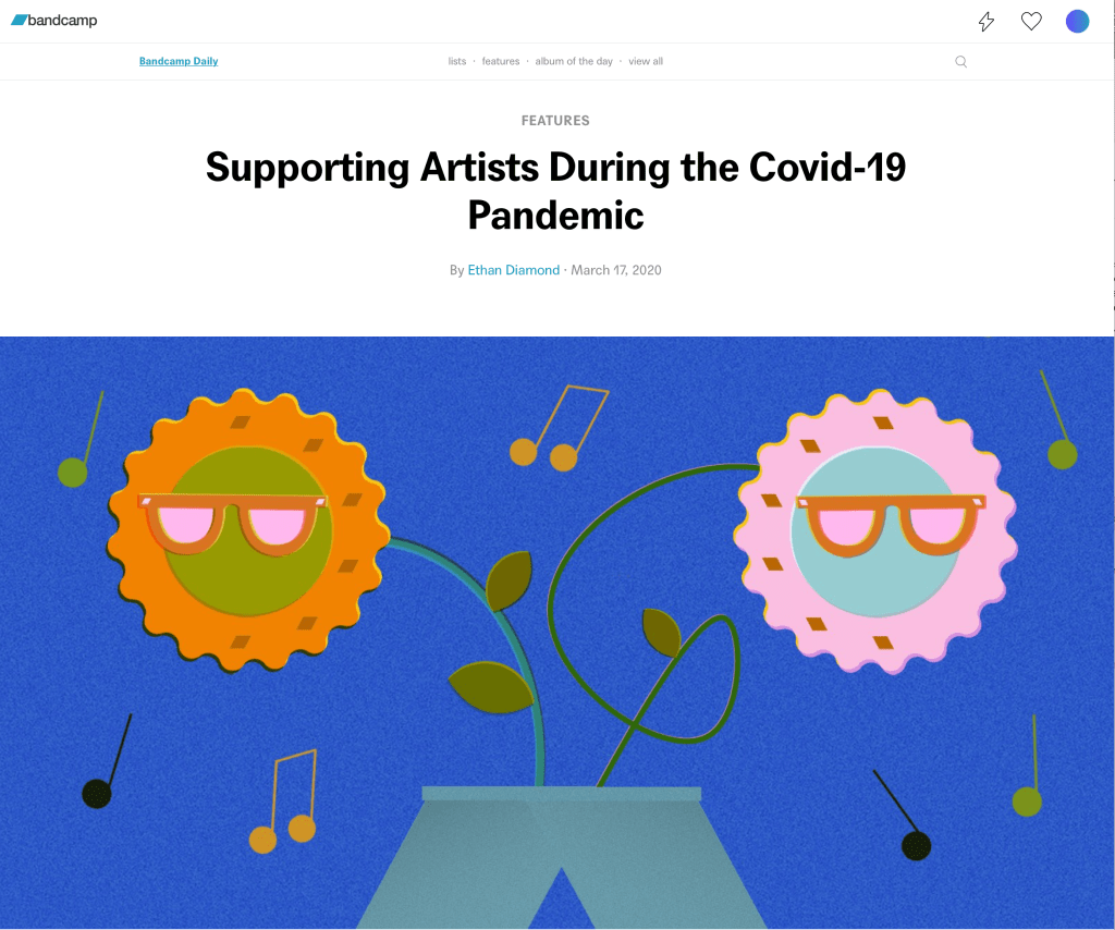 Bandcamp informed us that they would be supporting artists during the Covid-19 pandemic. In an effort to raise awareness around the impact on musicians, they are waiving their revenue share on Friday, March 20.