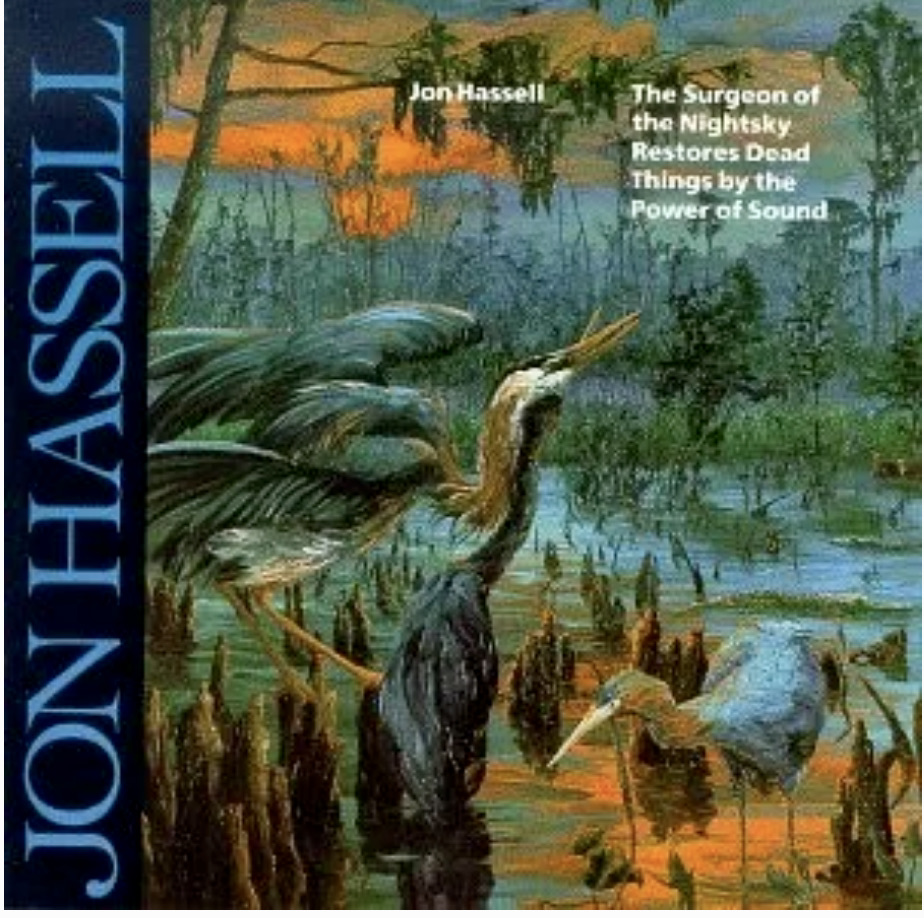 As a student, he was attracted to serialism and after graduating he studied under Karlheinz Stockhausen in Europe. On returning to the US he met Terry Riley and performed on the first recording of ‘In C’, a work regarded as a seminal moment in modern music. During the early seventies, he discovered Kiranic singing and along with Riley, La Monte Young and Marian Zazeela, studied under Pandit Pran Nath (Nath was a pupil of the Sufi vocal master Ustad Abdul Wahid Khan). They were later joined by Jazz Musicians and among them Lee Konitz and Don Cherry. Hassell was a Miles Davis fan and several of his albums highlight that influence. His best-known mainstream collaborations were with Brian Eno, Talking Heads, David Sylvian, Ry Cooder and Tears for Fears.