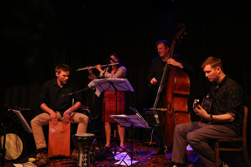 Mukhlisa: Tim Sellars (leader, percussion), Glen Wagstaff (guitar), Tamara Smith (flute), Michael Story (double bass) – CJC Creative Jazz Club, Thirsty Dog, March 10, 2017