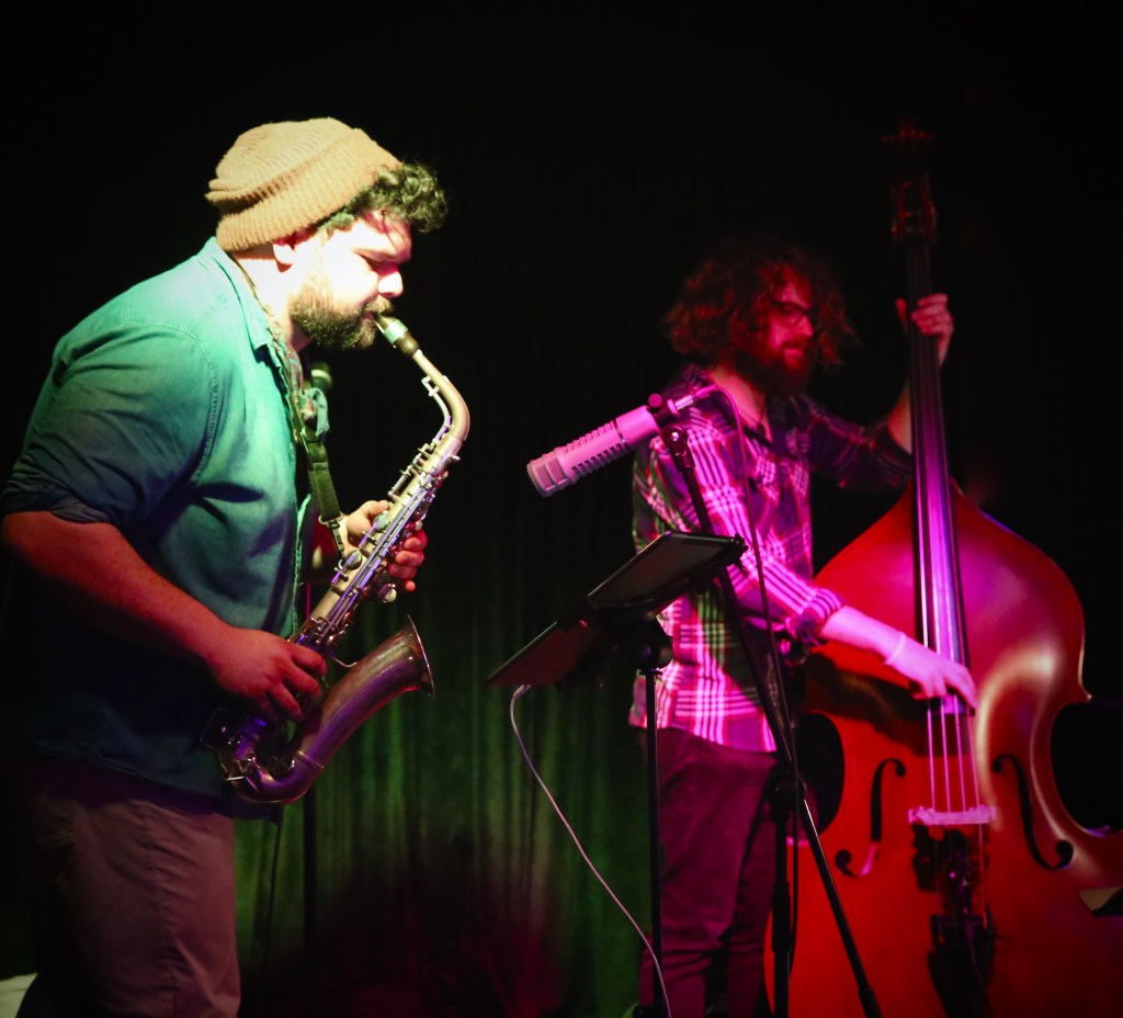 The gig artists were Jasmine Lovell-Smith (soprano saxophone), Blair Latham (bass clarinet), Tom Callwood (upright bass), Tristan Carter (violin), Jeff Henderson (baritone saxophone), Hermione Johnson (prepared piano), Chris O’Connor (percussion)