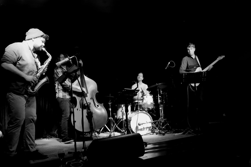 Tom Botting (upright bass, compositions), Kevin Field (piano), Michael Howell (guitar), Callum Passells (alto saxophone), Jono Sawyer (drums). The gig took place at Anthology, K’Road for the CJC Creative Jazz Club, 5 August 2020