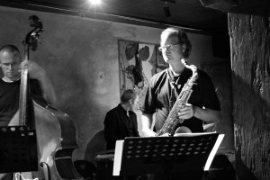 Q. Working without a chordal instrument brings different challenges and rewards. What are your feelings about working and recording with a sax, drum & bass trio.