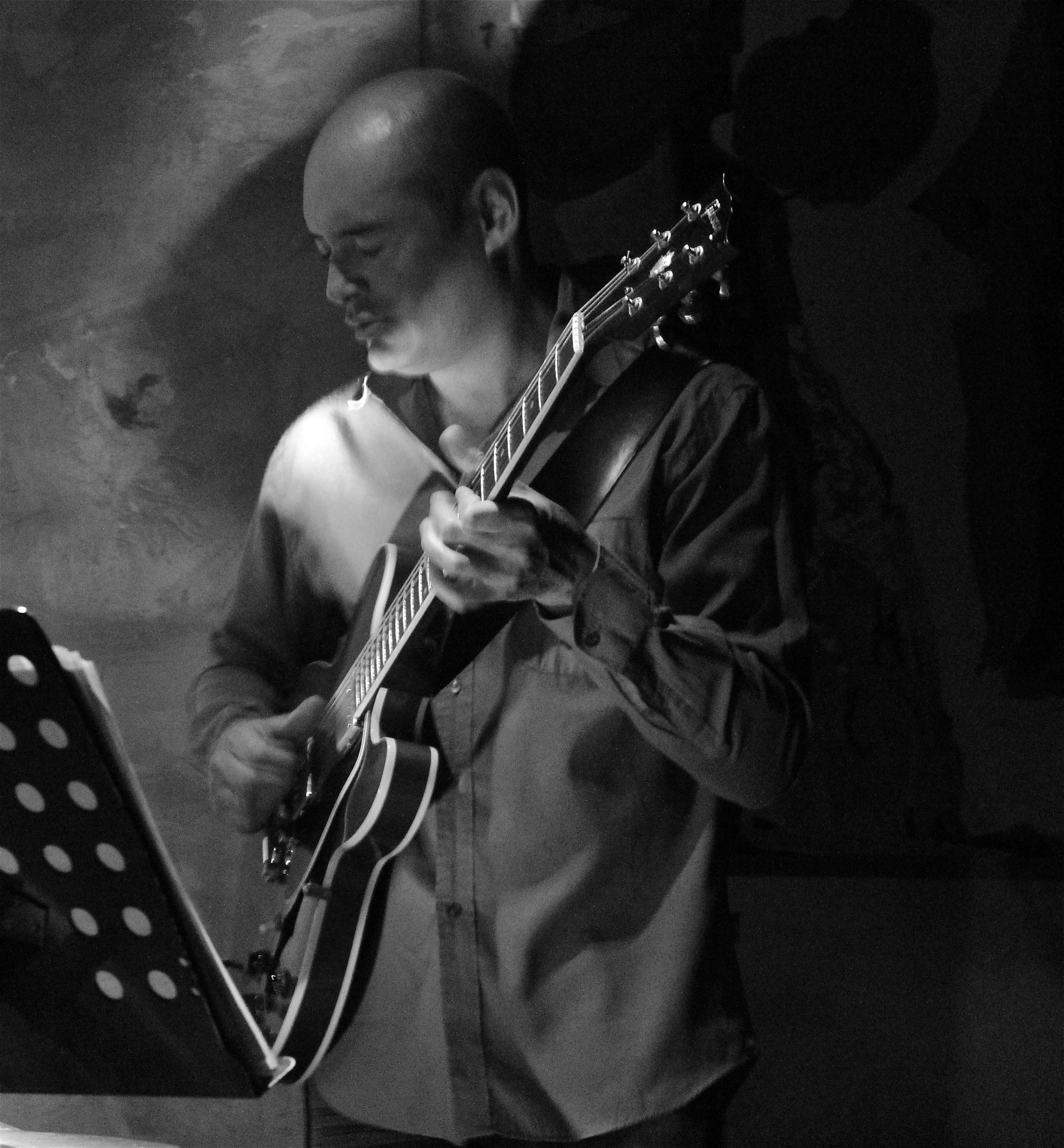 Joel Vinsen played a nice Ibanez guitar and he utilised the variety of pedal effects at his disposal tastefully. When the moods of the numbers changed it was his comping or licks that guided the others.