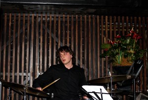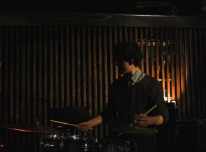 Dixon Nacey is without a shadow of doubt one of the best guitarists in New Zealand and it is a joy to watch him solo and interact with the other musicians. During solos he will often close his eyes while weighing up the next step and his facial expressions reveal his commitment to the process as he dives ever deeper into the tune. It is also a revelation to watch him in call and response situations. When he and Alan are batting each other ideas, this often turns into good-natured un-armed combat. Dixon watches intently while waiting for a challenge. Occasionally calling to the others as if to say, “do your worst”. When a musical phrase is tossed into the air he will smile gleefully and pounce on it, turning it about until it is fashioned into a thing of his own. Josh Sorenson proved to be the perfect groove drummer as he locked down the beat and pulled the unit together. This type of drumming requires specialist skills and Josh most certainly possesses these.