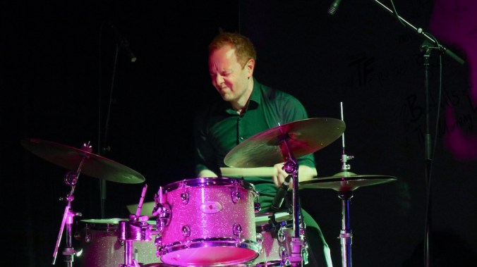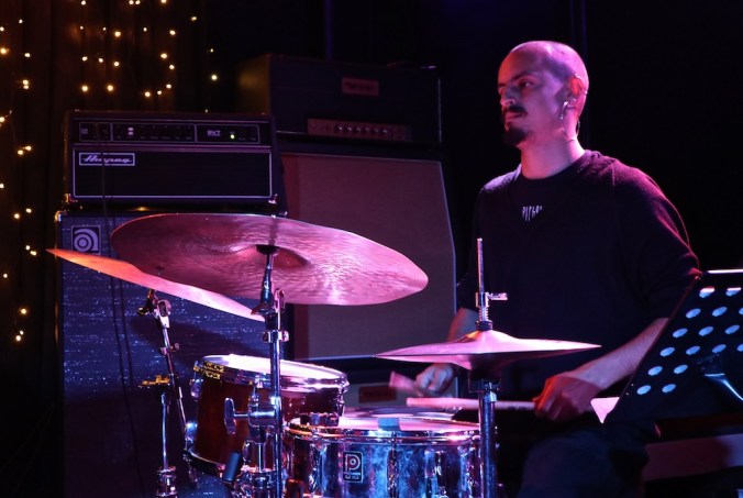 The history of music is the history of instrument development and from the earliest of times, musicians have expanded the reach of their instruments. The mother of instruments, Al’ Oud was first documented 3500 years ago, but documenting the development of the drum is a nebulous task. It almost certainly arose in Africa and along the way it has undergone a multitude of modifications. On Wednesday there was another waypoint along the continuum under the forward-looking beats of Stephen Thomas. Thomas is a gifted drummer and percussionist and in his hands, the instrument takes on a new life by transcending the mundane. The gig arose out of his last years Masters recital and the focus was on extended technique; combining physical drum rhythms, electronics via a drum pad, prepared drum heads and samples.