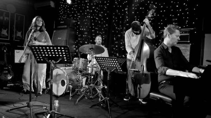 As if to underscore this I found myself thinking of Anita O’Day and June Christy. It’s not that Wadey sounded like either, but there they were, living inside her delivery.That flash of vulnerability in a sideways glance, the vibrato-less hard hitting clean tone, The sass, the time feel, the supreme confidence – it is hard to put into words but it was all there without being overt.