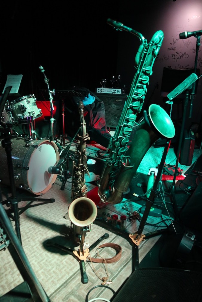 There was no music on the stands, one break and there were no announcements. The music followed its own momentum and created its own time. In some sections you were confronted with reedy screams, while in others you heard languid whispers; hinting at some lost illusory past; one located just outside the edge of memory. There was of course structure, but that was determined by the music’s inner logic. It reminded me of a recent Wayne Shorter performance where he purged any semblance of song form; removing structures that impeded the flow, leaving the audience with just music; a vessel inside which the musicians could move freely. Intuitive interaction is the foundation of all improvised music. In this case, the music was a river in flood, an elastic entity, following an old course or cutting a fresh channel at will.