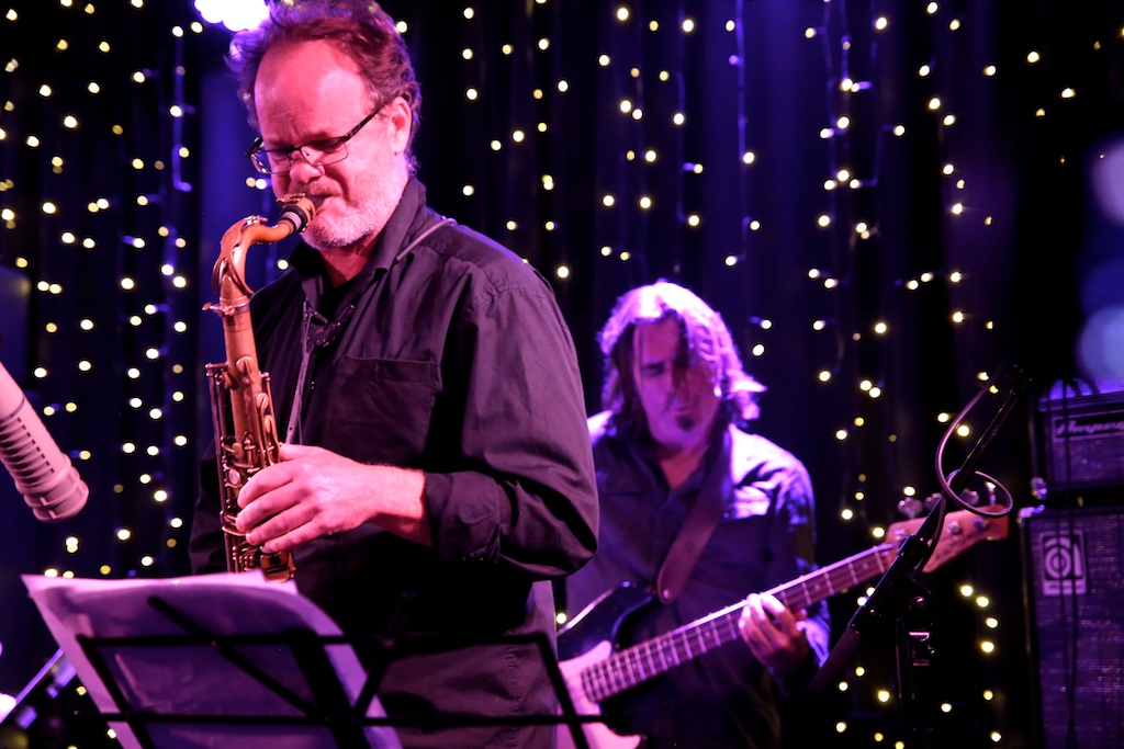 Attempts to confine improvised music within historic boundaries is plain foolishness. Never has this been more obvious to me than at last week’s ‘Monsters of The Deep’ gig. Superficially it sounded like, looked like classic fusion; but it was and it wasn’t. The keyboard instruments were classic analog, the lighting otherworldly; various delays, distortions or effects echoed across the room. While the overall vibe nodded in the direction of Jazz/Rock, the musical language was that of deep improvisation. The accessibility hiding worlds of complexity and there’s the wonder of it. Few local musicians could pull this off as well as Crayford and Haines did.