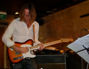 Neil handled his slim necked Fender as if it was an extension of his own limbs.    This effortless skill has been gained from his many years working as a professional musician (both here and overseas).   There is the hint of rock-god in his act but it is delivered with a cheeky grin.   This guy does not take himself too seriously but he does invest everything into the music.   A friend of mine recalls seeing him play at the Tauranga Jazz festival when Neil was barely a teenager and he was impressed back then.
